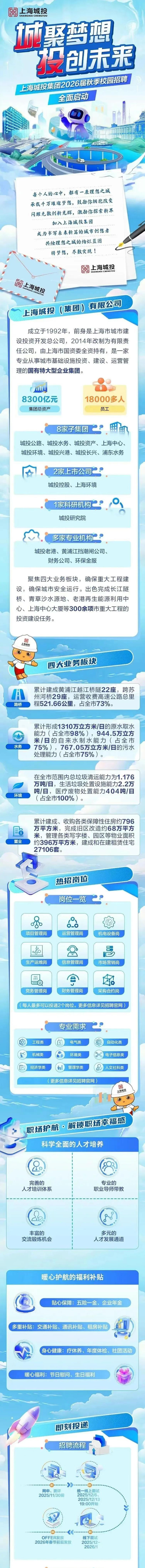 上海城投(集团)有限公司成立于1992年,前身是上海市城市建设投资开发总公司,2014年改制为有限责任公司,由上海市国资委全资持有,旗下拥有6家子集团(城投公路、城投水务、城投资产、上海中心、城投环境、城投兴港)、2家上市公司(城投控股、上海环境)、1家科研机构(城投研究院)以及城投老港、长兴开发公司、长兴前卫公司、城投财务公司、城投环保金服公司等单位,是一家专业从事城市基础设施投资、建设、运营管理的国有特大型企业集团。