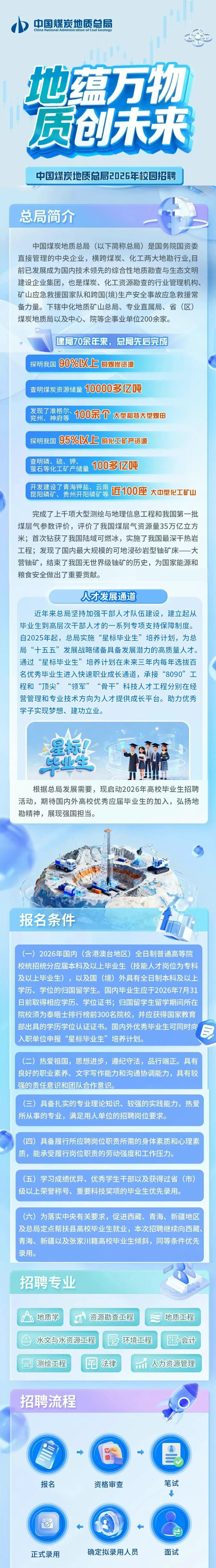 中国煤炭地质总局(以下简称总局)前身为1950年成立的工业部煤矿管理总局地质勘探室,1953年,燃料工业部筹建了煤矿管理总局地质勘探局,先后隶属于燃化部、煤炭工业部,2003年成为首批划归国务院国资委的中央企业,横跨煤炭、化工两大地勘行业,目前已发展成为国内技术领先的综合性地质勘查与生态文明建设企业集团,也是煤炭、化工资源勘查的行业管理机构、矿山应急救援国家队和跨国(境)生产安全事故应急救援常备力量。